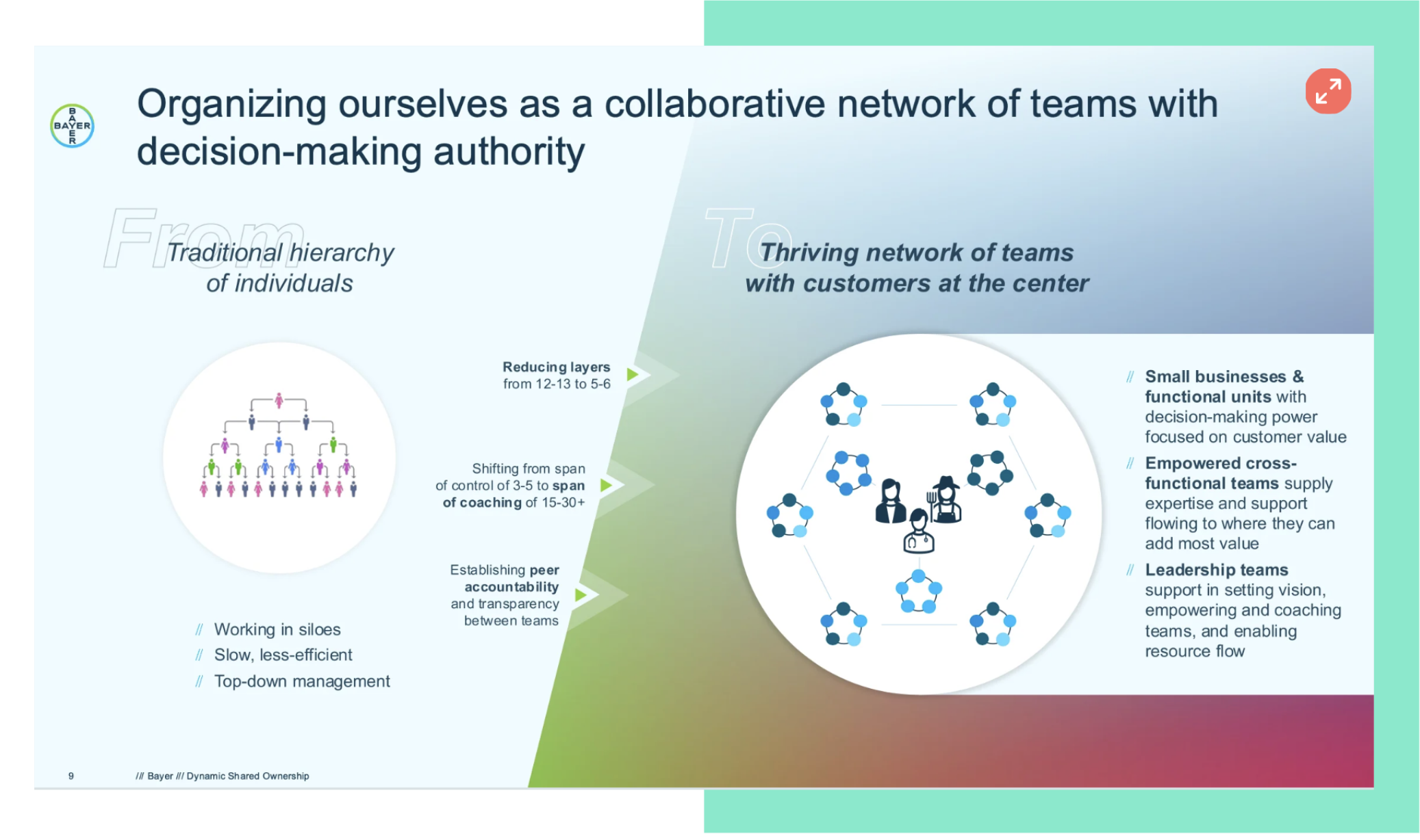 The strategy, coined “Dynamic Shared Ownership,” envisions replacing traditional corporate hierarchy with thousands of self-managing teams that band together for 90-day work cycles. Since introducing it in July 2023, Bayer has cut about 11,000 jobs, Anderson said in a call with analysts last month.